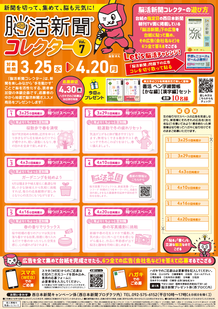 ※「脳活新聞」の名称、ロゴは西日本新聞社の登録商標です。(登録第6537944号、第6487594号)