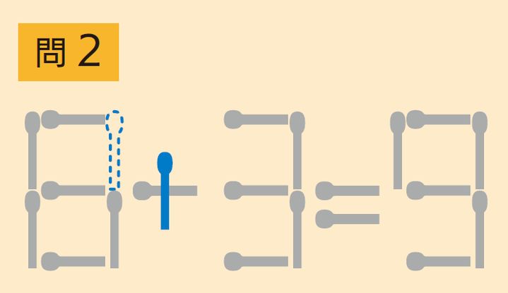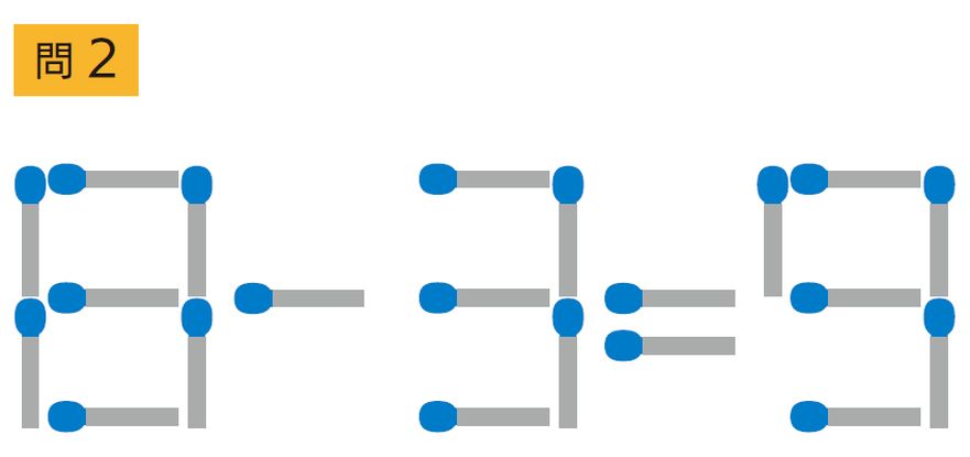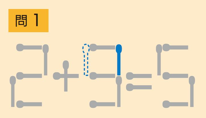 マッチ棒を1回だけ動かして正しい式にしよう