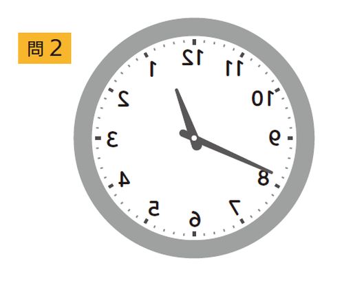 反転や回転している時計が示す時刻を頭の中で考えよう