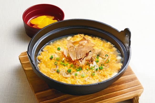 ふわふわの玉子と、タンパク質、ビタミンD、ビタミンB12などが豊富な釜揚げしらすを使った雑炊。食欲がないときや、肌寒さを感じるこの季節にピッタリな、ホッと心も身体も温まる優しい一品です。