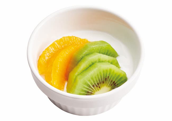 「ヨーグルトで生きた乳酸菌を!」ヨーグルトにオレンジ・キウイのフルーツが合わさり、不足しがちなビタミンCも取ることが可能♪