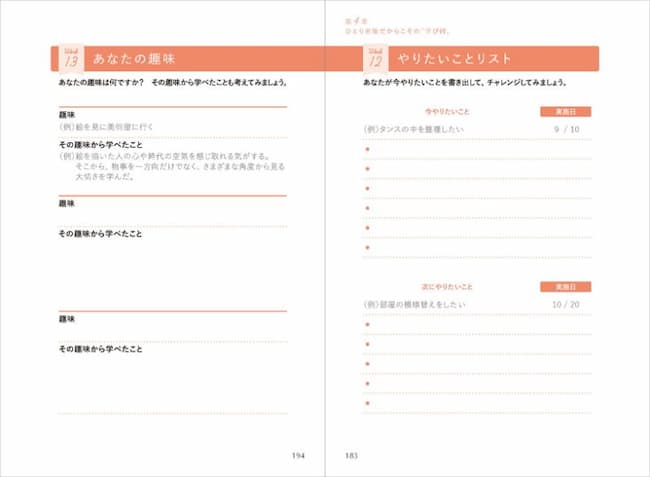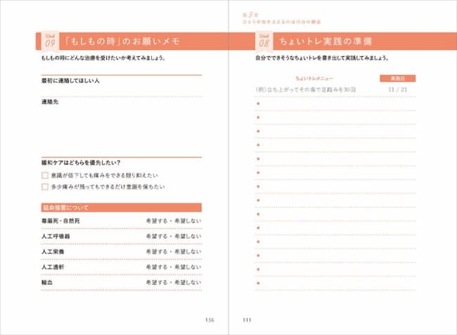さらに、そのアドバイスを実際の生活に落とし込んでいくための”記入コーナー”を、章ごとに設けている点も大きな特長です。