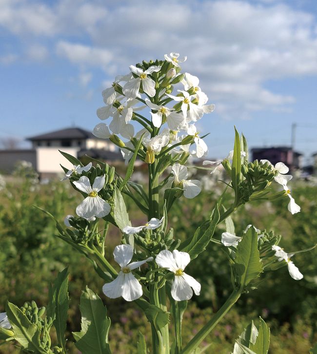 春を迎えると、取り残したダイコンが一斉に花を咲かせ、白い菜の花畑みたいになります。見事ですよ。