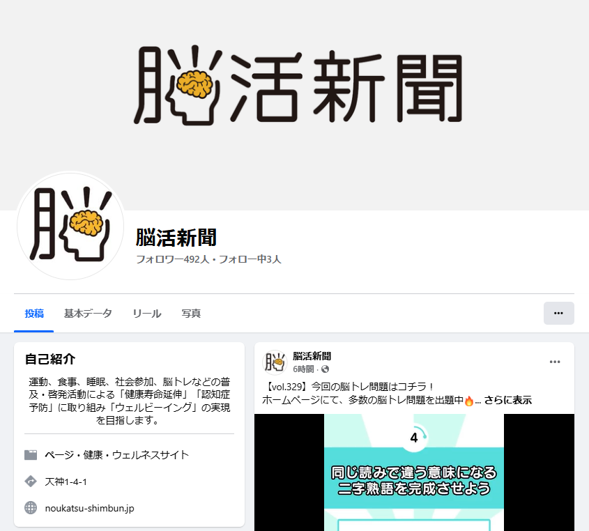 facebookでもInstagram同様に脳トレ問題、脳活菜園の様子、脳活新聞フェアの様子を配信しています!健康に関する情報をいち早くゲットしましょう!