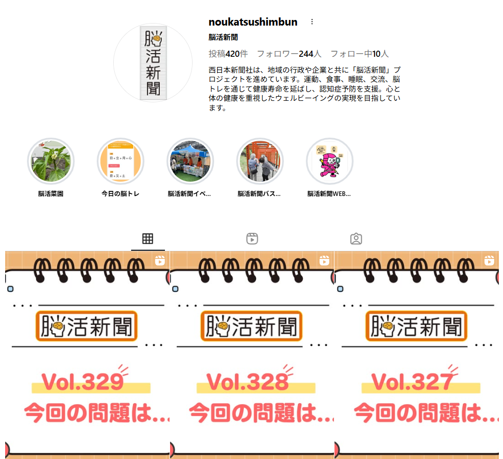 また、脳トレだけではなく脳活新聞で取り組んでいる「脳活菜園」や「脳活新聞フェア」などの情報も配信しています。気になる方はぜひフォローしてください。