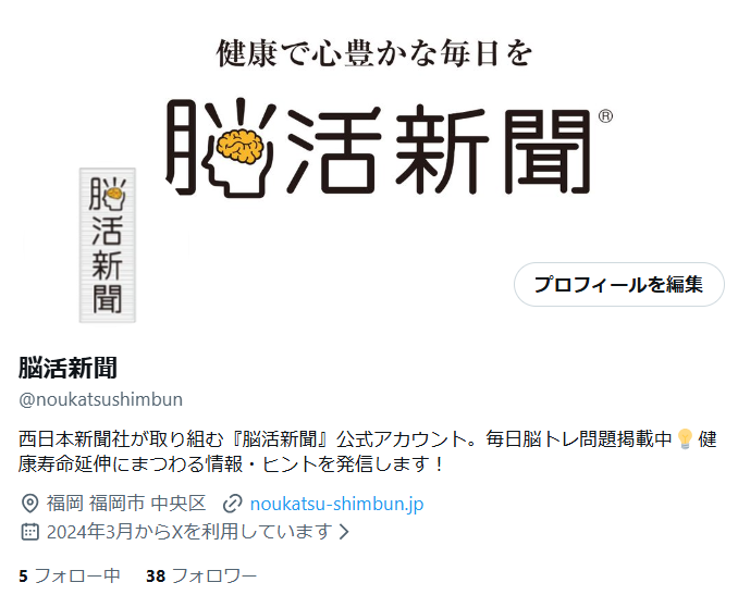 Xでは、脳活新聞が発信する最新のお知らせをお届けしています!健康への感度が高い方々や最新のニュースを知りたい方はぜひフォローしてください!