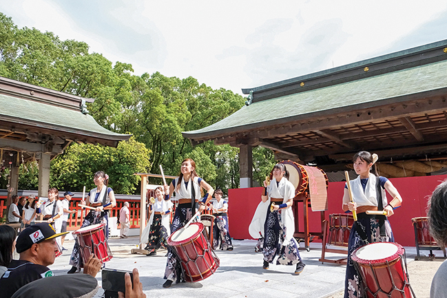 また2025年の秋季大祭を拡大して初開催した「だいこく祭」が話題に。キッチンカーが並び、音楽ライブや浴衣コンテスト、伝統文化体験のほか、縁結び特別祈願祭など世代を超えて楽しめる内容。「新スタイルの祭りとして地域をつなぐ役割を果たしていきたい」と権禰宜(ごんねぎ)の野上勝矢さんは話す。