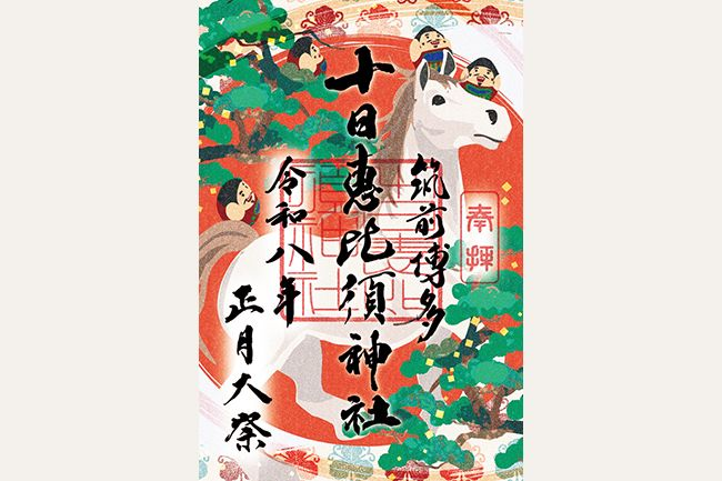 商売繁盛と縁結びの「福の神」として約430年にわたり博多商人に慕われてきた。えびす様の姿にちなんで鯛をモチーフにした授与品をそろえ、めで鯛みくじ、鯛の絵馬、鯛守りなどカラフルで愛らしいデザインが目を引く。月替わりの御朱印、見開き型の限定御朱印を求める参拝者も多い。