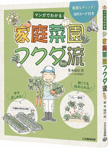 家庭菜園研究家で人気農チューバ―でもある福田俊さんが、日本農業新聞に約14年にわたって連載している人気コンテンツを1冊の本にまとめた「フクダ流家庭菜園」。狭い面積でもたくさんの品目をうまく栽培するポイントを、イラストレーター川野郁代さんのマンガで分かりやすく解説した、家庭菜園の指南書です。