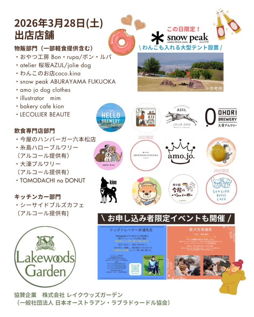 鳥飼八幡宮わんフェス -春祭り- 福岡発祥の店舗と神社で開催するこれまでにない新しい形のドッグイベント! 2026年3月28日 2026年3月29日 【開催概要】 ①福岡で大人気の......