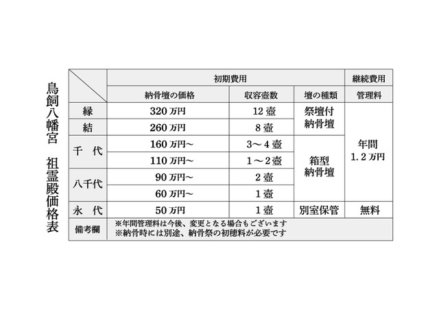 鳥飼八幡宮祖霊殿では、祭壇付きの納骨壇と箱型の納骨壇があり、個人から一族まで対応出来る様々な大きさの納骨壇を取り揃えています。