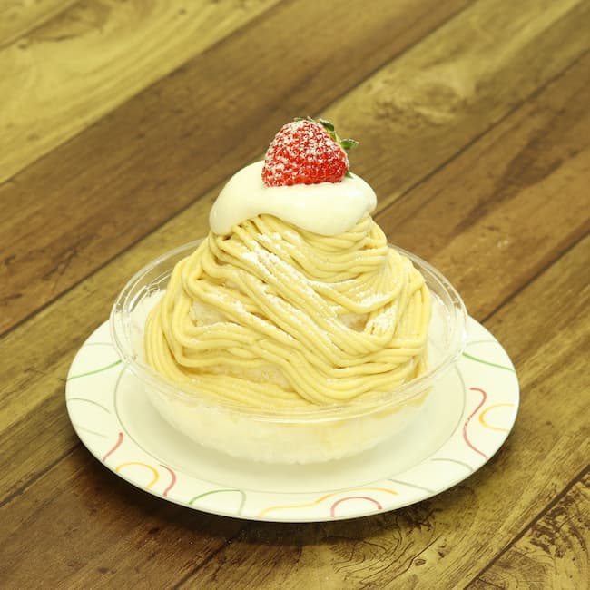 ふわふわのかき氷の上に、鹿児島県産のさつまいも「シルクスイート」を使用したペーストをたっぷりとモンブラン風にデコレーション。