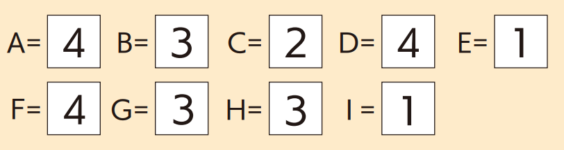 縦・横の各列に同じ数字が入らないように、枠に1~4の数字を不等号に従って入れよう。